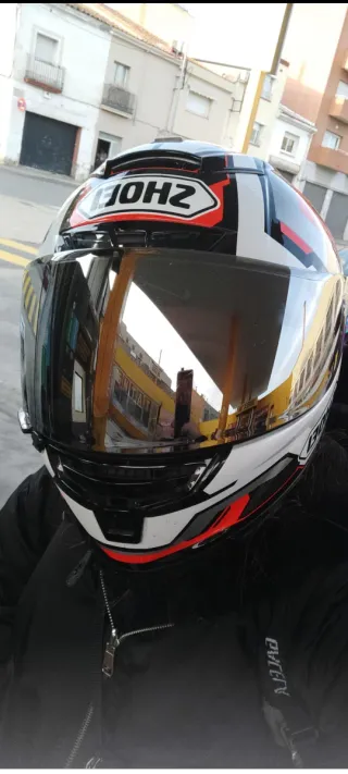 Casco integral Shoei Xpirit 3 con un diseño deportivo y llamativo. XS - Diseño con detalles en rojo, blanco y plateado. - Visera con acabado espejado. -entrego visera transparente original sin uso. - Cierre de seguridad.