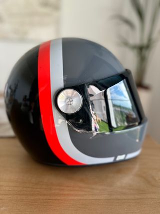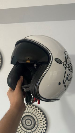 Versión especial Spector, serigrafía única. Con bolsa y caja original. Se encuentra en buen estado general. No ha tenido un solo golpe o caída. Se cambia por haber recibido un casco nuevo de regalo. Tiene menos de 1 año. Tiene algún pequeño roce en la visera, que no afecta en absoluto a la visión. Tiene pinlock Tiene visera solar