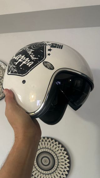 Casco jet de estilo clásico para moto, color negro mate. - Talla L - Diseño abierto. - Cierre de seguridad. - Acabado mate. Por supuesto en perfecto estado y sin golpes ni caídas. Lo he usado un par de meses pero no es mi talla.