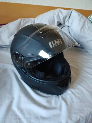 Casco de moto integral de la marca LEM. Lleva integrado el sistema de clmunicadores EJEAS (Muy buena calidad). - Talla S. De fibra de vidreo, muy resistente. - Color negro mate. - Visera transparente. - Interior acolchado. Lo vendl con funda y algún otro complemento