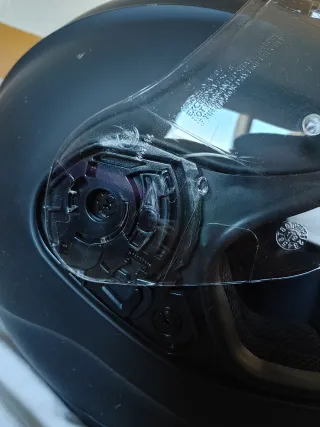Casco con menls de 1 año desde la compra. Se ha usado como mucho 15-20 veces en trayectos de 5-10km. Incluye visera solar. Nueva normativa, Talla L. Doble hebilla El precio original en tienda son 350€. Se desmonta para lavar , incluye la funda de tela y el librito garantia/instrucciones. Se vende porque quiero otra estetica de casco .