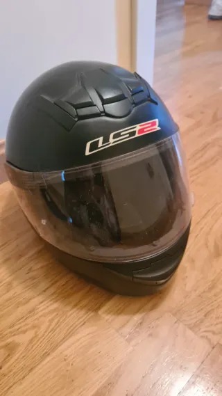 Casco integral LS2 de color negro, con visera transparente. Incluye funda protectora. Talla S - Casco de moto LS2. - Color negro. - Visera transparente. - Funda de tela negra con detalles azules y logo LS2.