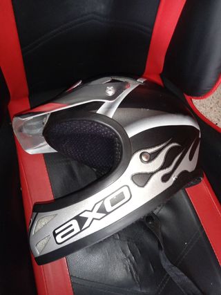 Casco de moto enduro AXO, en excelentes condiciones. - Diseño deportivo. - Visera cromada. - Talla única (verificar medidas antes de comprar).