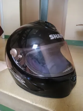 Casco integral Shark R2R Summum en color negro. - Talla XL. - Diseño deportivo. - Visera transparente. - Cierre de seguridad. - Ventilación. - No ha sufrido caídas, solo tiene un rasguño en la parte trasera de una caída tonta.