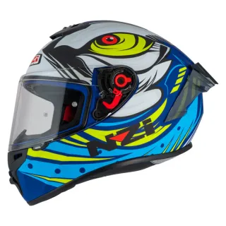 Casco de moto con diseño llamativo y colores vibrantes. - Diseño Wild Power con detalles gráficos. - Color principal negro con detalles en amarillo neón. - Visera transparente. - Cierre de seguridad. Usado 2 veces literalmente. Xxs