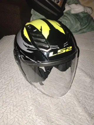 Casco de moto negro tipo jet de la marca LS2 con visera transparente y gafas de sol integradas. Talla M Trae también bolsa de transporte original de la marca - Diseño moderno y aerodinámico. - Visera clara para una visibilidad óptima. - Cierre de seguridad.