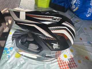 Casco de moto infantil con diseño deportivo. - Color blanco con detalles gráficos. - Visera superior. - Interior acolchado. No se ha usado nunca, talla M muy justa. Por traslado me tengo que deshacer de el. Hazme una oferta que seguro llegamos a un acuerdo.