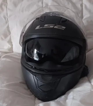 Casco de moto LS2 en talla S. - Color negro mate. - doble visera - Incluye intercomunicador Bluetooth FOOSPORTS.