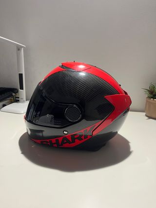 Casco de moto integral con acabado en fibra de carbono. - Diseño deportivo y aerodinámico. - Visera transparente. - Marca: Shark. - Talla L. Se vende por venta de moto. Utilizado 3 meses sin caídas. Incluye funda.