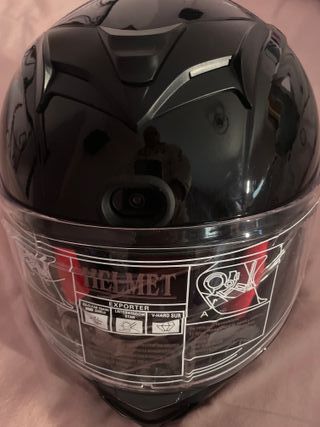 Casco integral de la marca FOXWEAR, diseñado para ofrecer seguridad y comodidad. Este casco cuenta con una cámara integrada. - Color negro brillante. - Diseño aerodinámico. - Visera transparente. - Homologación ECE R22.05.