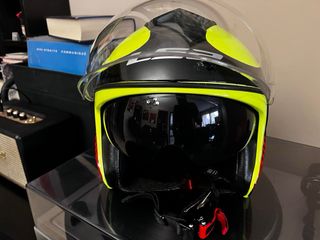 Casco de la marca OMP en color amarillo neón. - Diseño deportivo. - Visera protectora. Talla L disponemos de varias tayas en stock