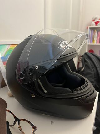 Casco de moto HJC en talla XS. Usado, buen estado. - Color negro mate. - Visera solar - Interior acolchado.