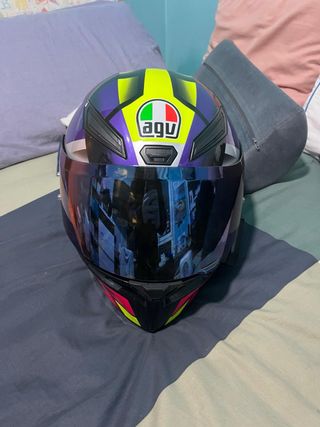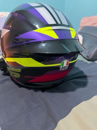 Casco integral AGV K1 S en talla XS. Diseño deportivo y aerodinámico. - Color: Morado, amarillo y detalles en rosa. - Visera oscura verdadera - Homologado. Trngo la visera original también y los papeles del casco con su bolsa y va con intercomunicador