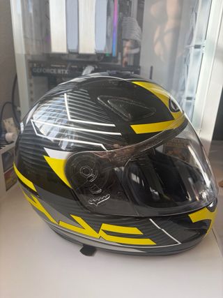 Casco de moto HJC en talla M, con una circunferencia de 58cm. Diseño llamativo en negro y amarillo. Visera NO Rayada. No tiene nada roto. - Marca: HJC - Talla: M (58 cm) - Color: Negro y amarillo