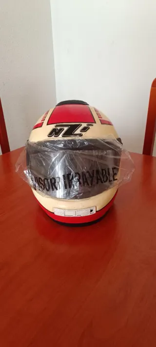 Casco integral NZI Style original, de estética retro vintage de los años 80, en combinación rojo y crema. Sin uso real, con alguna marca por el paso del tiempo. Conserva el plástico protector original en la visera. Interior impecable. Es de la talla M y es la versión Kevlar Mix (mezcla de fibra y kevlar, gama superior de la época). Homologación original E9 (España). Es un modelo auténtico de época, no reedición actual. Muy difícil encontrar uno en este estado, completamente nuevo y sin estrenar. Al ser un casco con homologación antigua (ECE 22.02), se vende como pieza retro / colección, no para su uso.