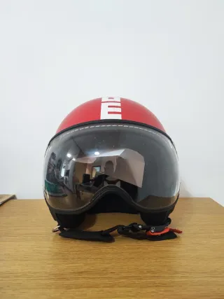 Casco de moto de la marca Momo, con nivel de seguridad E3. Presenta un diseño llamativo en color rojo con detalles blancos. - Visera amplia y oscura. - Cierre de seguridad. - Interior cómodo. Tiene alguna marca, pero en buen estado.