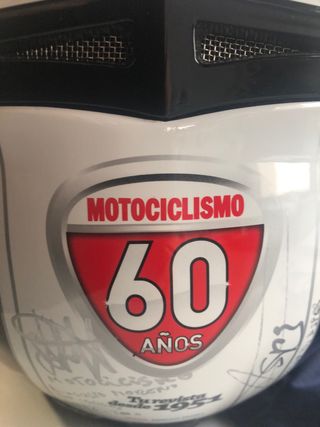 Casco AGV K-4 EVO edición limitada nro. 0099 de 1000 “60 aniversario de la revista Motociclismo”, talla S (55-56 cm), nuevo a estrenar en su caja con su funda y firmado por pilotos de Moto GP, moto 2, moto3, 500, 250, 125 y superbikes. Firmas de: Ángel Nieto, (DEP), Pablo Nieto, Alex Crivillé, Carlos Checa, Jorge Martínez “Aspar”, Carlos Cardús “Tiriti” y el director de la revista “Motociclismo” durante los años 1996 a 2010, (época dorada de la revista) Augusto Moreno de Carlos. Preferible a coleccionista. No cambios, poco negociable, abstenerse ofertas absurdas. O cambio por moto 125 4T ajustando diferencias.