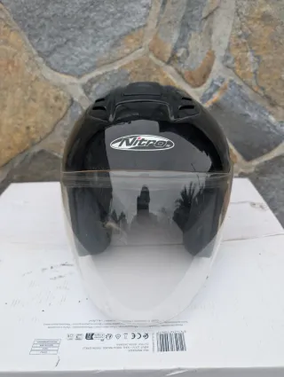 Casco de moto Nitro en talla XL. Diseño negro con visera. - Marca: Nitro - Talla: XL - Color: Negro - Visera transparente