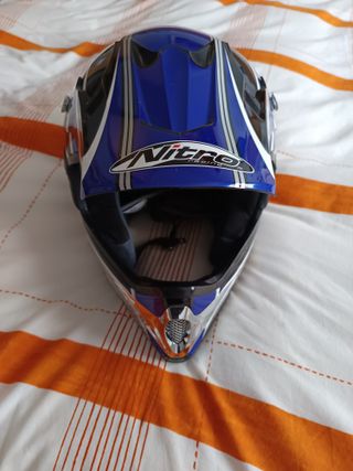 Casco de motocross Nitro Racing en color azul y plateado. Talla L no se ha usado - Diseño deportivo. - Interior acolchado. - Cierre de seguridad.