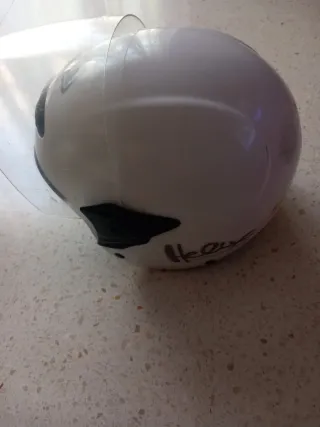 Casco para moto estilo scooter, ideal para jóvenes. Muy bien cuidado . - Color blanco brillante. - Visera transparente sin arañazos - Diseño cómodo y seguro.