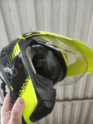 Vendo casco de tipo cross/enduro en color amarillo fluor con negro. Está en buen estado general, con algunos signos de uso, pero perfectamente funcional. Interior limpio y cómodo, cierre seguro y visera fija. Talla M ❌ Sin caja ni funda ✅ Ideal para uso ocasional, quad, pit bike o enduro 💰 Precio: 40 € (costó unos 90 € nuevo) 📍 Se puede ver y probar sin compromiso