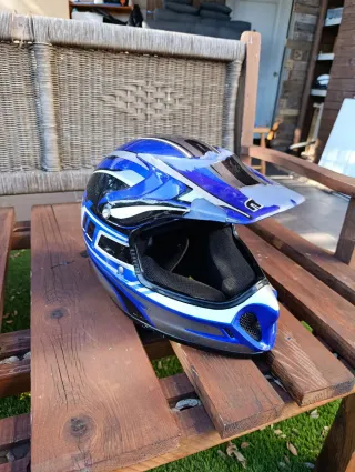Vendo casco de motocross marca Nuend con un diseño gráfico espectacular en colores blanco, rojo y azul. Es un casco robusto pero ligero, ideal para que el niño no se canse durante sus sesiones de moto o quad. Características principales: Seguridad: Estructura exterior resistente con visera ajustable y aerodinámica. Ventilación: Sistema de entrada de aire frontal en la mentonera y extractores traseros para mantener la cabeza fresca. Interior: Forro acolchado, transpirable y cómodo. Cierre: Sistema de cierre de seguridad ajustable. Estado: Se encuentra en buen estado general, con las almohadillas interiores limpias y bien cuidad