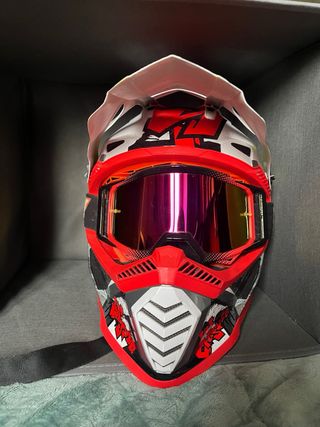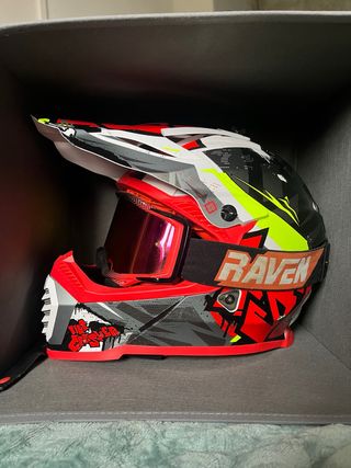 Me costó todo 120€. Tiene muy poco uso como se ve, está en perfecto estado. Casco de moto LS2 MX437 Fast Evo Crusher. Talla L 59-60 cm. Color principal rojo con detalles en blanco, gris, negro y amarillo neón. Incluye gafas de cross Raven Sniper Echo de espejo rojo multicolor. Interior desmontable y lavable. Normas de homologación ECE 22.05 y DOT. Visera integrada. Cierre de doble anilla. Casco moto quad ciclomotor protección enduro cross sm supermotatd motocicleta cabeza motocross quat