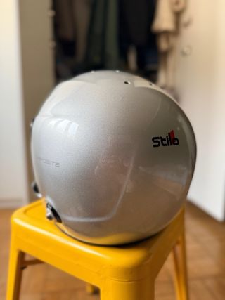 *Homologación vigente* Casco Stilo ST5 Rally en color plata. Diseñado para ofrecer seguridad y comodidad. Como nuevo, usado dos veces. Tiene dos marquitas en la parte trasera que casi ni se aprecia, con pulido se iría. Tiene interfonos. - Diseño aerodinámico. - Talla 2XL - Visera ajustable.