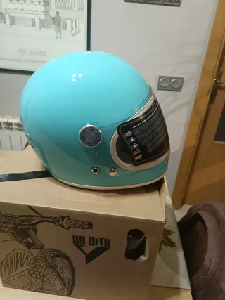 Casco de moto estilo retro en color azul turquesa. - Talla S. - Marca By City. - Modelo Roaster. - A estrenar.
