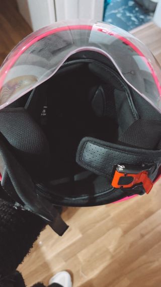 Casco Givi estilo Jet Retro en color naranja y negro - Talla XS (54 CM) - Diseño clásico y protección moderna. - Visera solar integrada. - Cierre de seguridad milimétrico. - Cómo nuevo, usado un par de veces. - Inperior PERFECTO. - Incluye bolsa de tela de transporte original.