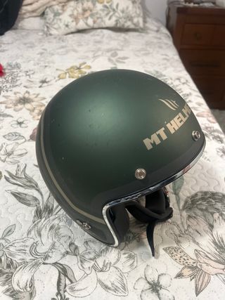 Casco de moto estilo retro en color verde oscuro. Presenta un diseño clásico. talla M. peso 1kg - Marca: MT Helmets - Color: Verde oscuro - Acabado: Mate - Ribete cromado en el borde inferior.