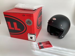 Casco de moto Bell Custom 500 de diseño retro en color negro mate. Ref. 7050050. Excelentes condiciones, solo dos usos. Absolutamente nuevo por dentro y unas mínimas huellas de uso normal por fuera. Talla S. Casco 3/4 clasico, inspirado en el primer casco producido por Bell en 1954. Recientemente perfeccionado con un diseño ovalado para un aspecto compacto. Carcasa de composite de fibra de vidrio. Cómodo ajuste con una correa acolchada. Interior acolchado y afelpado. Relleno IONIC+ de secado rápido. 5 broches para viseras o protectores. Ligero, solo pesa 980 g. Incluye caja original y manual. Peso con caja: 1500 g.