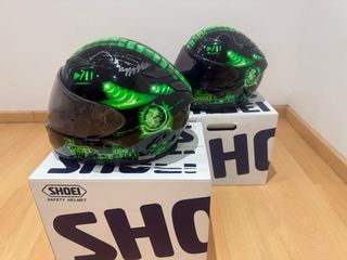 PRECIO POR LOS DOS JUNTOS. Se venden dos cascos Shoei XR 1100 con un diseño llamativo en verde y negro. Ideales para los amantes de las motocicletas. Interiores bastante usados. - Diseño deportivo y moderno. - Incluye visera. - Talla L y XS (XS con visera deportiva)