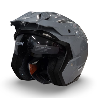 Casco Trial Unik Link DV Nardo Grey Tallas disponibles: XS, S, M, L, XL y XXL. Disponible en 3 gráficas: Negro Mate, Nardo Grey, Blanco brillo. Homologación 22.06 Cierre micrométrico, gafas de sol. Su caja y funda original. Cualquier duda al 695276284. Envíos a todo el país.