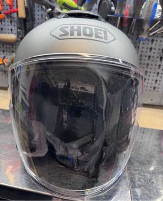 Casco de moto Shoei J-Cruise con pantalla. - Color gris. - Diseño abierto. - Gafa sol integrada