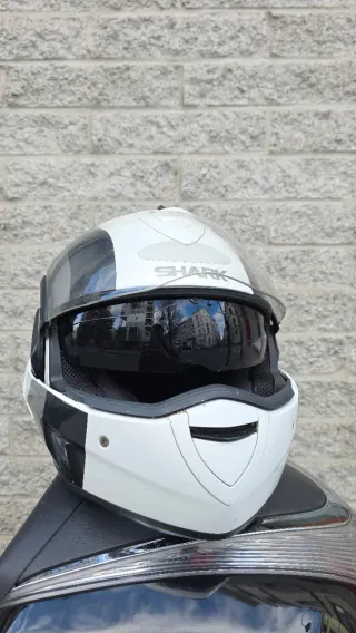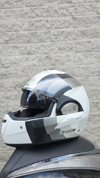 Casco modular de moto SHARK Evoline con un diseño moderno y funcional. - Color gris y blanco. - Visera integrada. - Ideal para maxi-scooter. Talla xl /L