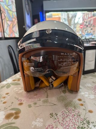 Casco de moto vintage crema y marrón