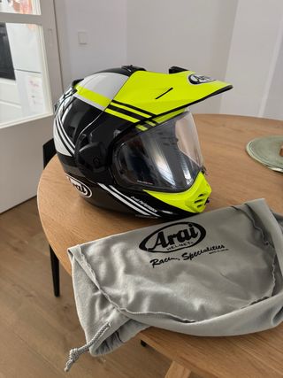 Casco Arai Tour X5 en talla XL, completamente nuevo, solo sacado de la caja. Es el mejor casco de moto trail en cuanto a seguridad. - Visor Pinlock antivaho ya integrado - Tanto el visor como la visera son desmontables - Todo el interior es totalmente desmontable y lavable - Cierre de doble anilla - Funda Arai - Instrucciones - Caja original - Garantía 2 años - Entrega en mano en Valencia o envío por Wallapop. Nuevo me ha costado 869€ (precio de tarifa es 999€)