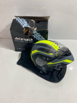 Casco modular Acerbis en color negro mate, talla XS. Diseño moderno y deportivo. Visor solar y cierre micrometrico. Homologación ECE 22.06. Incluye funda para el casco.