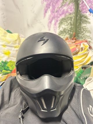 Casco de moto negro con logo de Scorpion. se utilizo en 2022 la ultima vez y solo en la temporada de vernano despues vendi la moto y el casco se guardo en el trastero, necesita un lavado el alcohado de dentro. lo vendo por 40 sin regateos - Diseño deportivo. - Visera integrada. - Interior acolchado.e