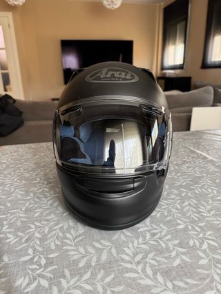 Casco de moto integral Arai Profile V en acabado negro mate. - Diseño aerodinámico. - Visera transparente. - Interior comodisimo y desmontable. - Funda transporte. - Talla S. Como Schuberth, Shoei, Klim, Nexx, Bell, Agv, Hjc, Ls2, Scorpion, Shark, Airoh.