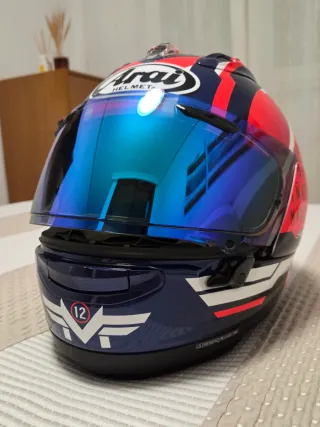 Pongo a la venta este espectacular Arai RX-7V con la gráfica oficial del piloto Maverick Viñales. Esta completamente nuevo. No tiene ninguna caída. Talla M (57-58cm) -Incluye visera Azul Iridium instalada ( también dispongo de la visera transparente original) ambas incluyen el pinlock anti vaho instalado. -Incluye alerón en la parte trasera. -Calota exterior PB-SNC2 y sistema de eje variable (VAS). - Forro Eco Pure totalmente desmontable, lavable y extremadamente cómodo. Cierre de doble anilla (D-Ring)