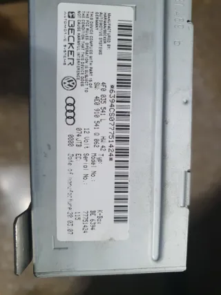Módulo de radio Harman/Becker para Audi A6 C6. - Fabricado en Alemania. - Modelo: K-Box BE 6394. - Número de serie: 77751424. - Fecha de fabricación: 28.03.07.