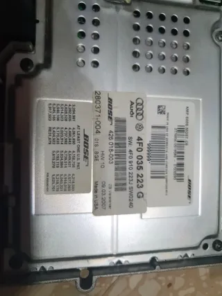Amplificador Bose para Audi A6 C6. - Modelo: AMP 6000 MOST C6 - Número de pieza: 4F0 035 223 G - SW: 4F0 910 223J SW0240 - HW: 10 - Fabricado en EE. UU.