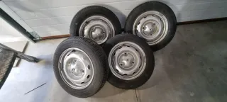 Juego de 4 llantas de acero para Renault 4L. Listas para montar. - Diámetro: 13 pulgadas. - Diseño clásico de 3.agujeros. - Incluye neumáticos 135/80R13. - Neumáticos semi nuevos