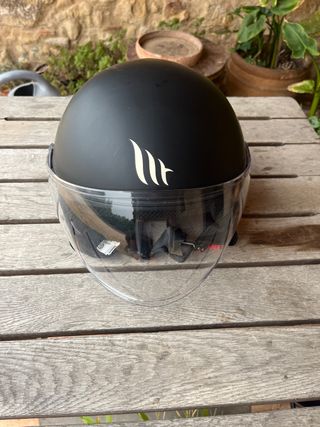 Casco de moto MT Helmets en color negro, talla E24. Se encuentra en perfecto estado, casi nuevo. - Diseño moderno y elegante. - Visera transparente incluida.