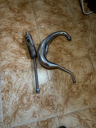 Escape para Aprilia RS 50, en aparente buen estado. - Pieza de recambio. - Diseño cromado.