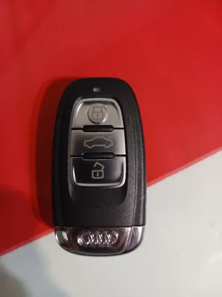 Llave de coche Audi con diseño moderno y elegante.para RS.A3.A4.A5.A6.Q3.Q4.Q5.Q6 - Tres botones principales: bloqueo, desbloqueo y apertura de maletero. - Logo de Audi grabado en la parte inferior.