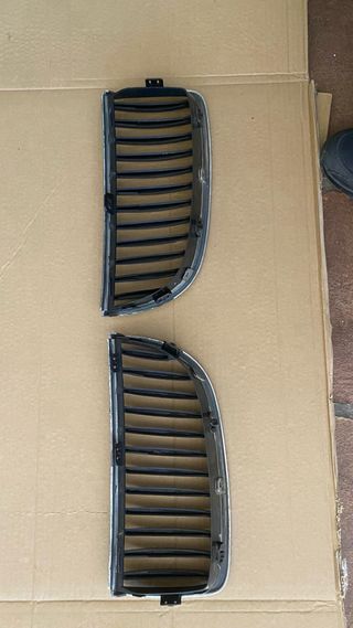 Juego de parrillas delanteras para BMW Serie 3 320d. Piezas de recambio con acabado cromado. - Diseño de barras horizontales. - Rejillas de ventilación laterales.