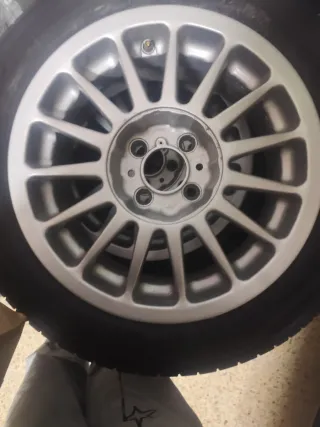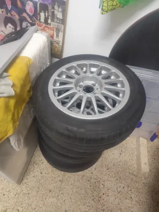 Juego de 4 llantas R15. Están en perfecto estado neumáticos incluidos algun que otro roce pero es del anterior dueño ya que no se las he puesto en el mio el pago puede ser en metálico o bizum - Diseño deportivo plateado. - Neumáticos incluidos.